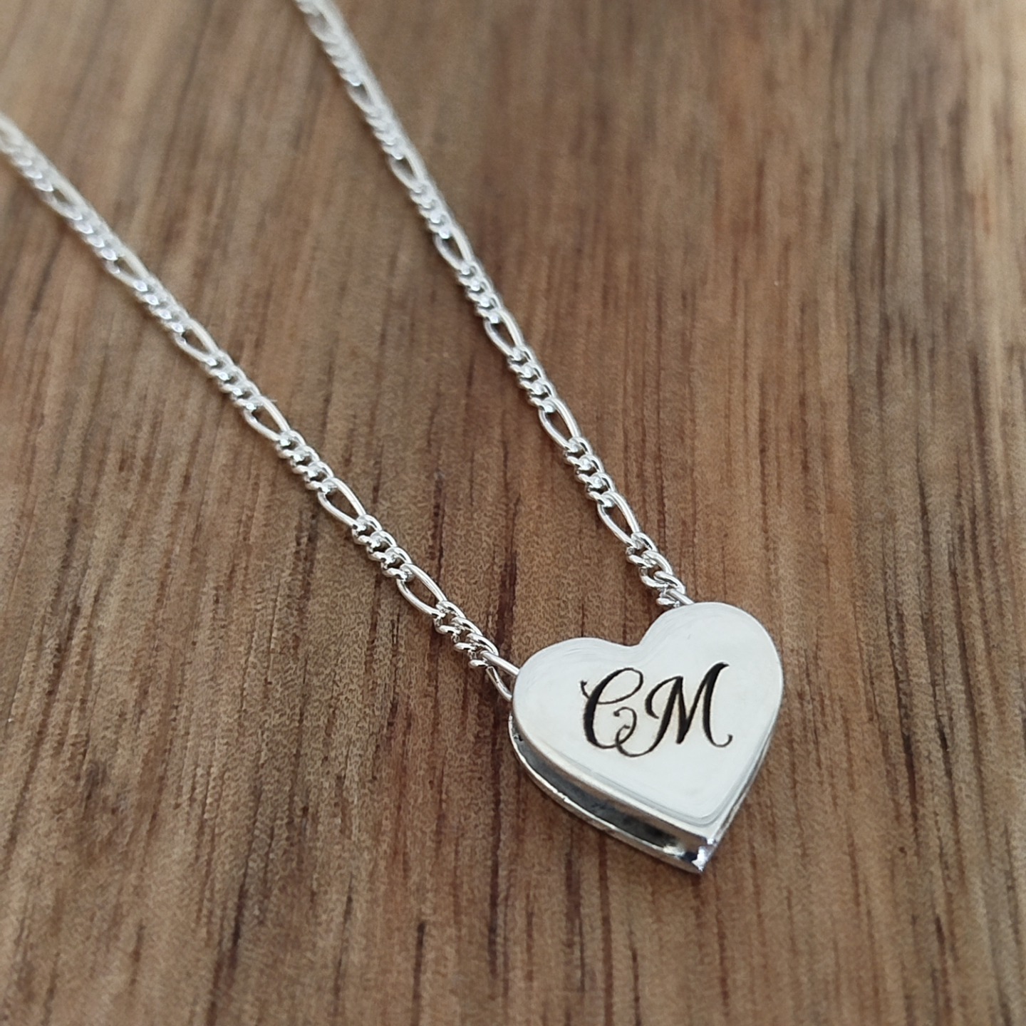 Dije corazón pasante. Se le puede grabar inicial o iniciales, Incluye cadena de 45 cm de largo, modelo sujeto a stock disponible