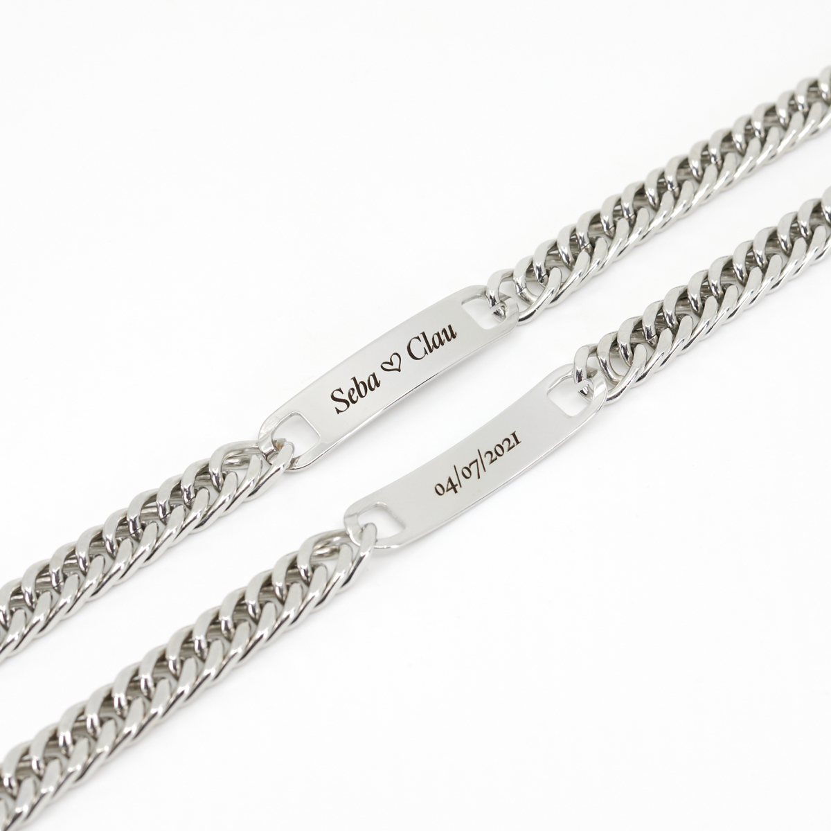 Pulseras de acero inoxidable para hombre con grabado láser personalizado. Ideales como regalo especial, puedes grabar nombres, fechas o frases únicas. Talle unico, no son ajustables